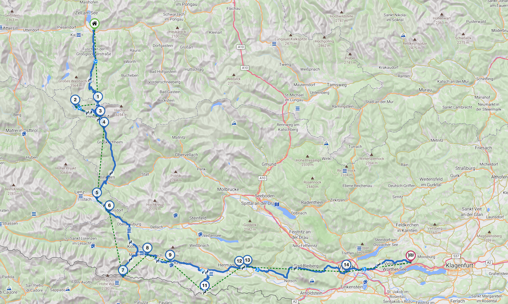 Route Zell am See Velden am Wörthersee (290Km 5h 30min)