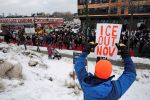 Die Demonstration war Teil von mehr als 1000 landesweiten Kundgebungen gegen die Abschiebepraxis der Regierung. Am Mittwoch war eine Frau in ihrem Auto von einem ICE-Beamten erschossen worden -