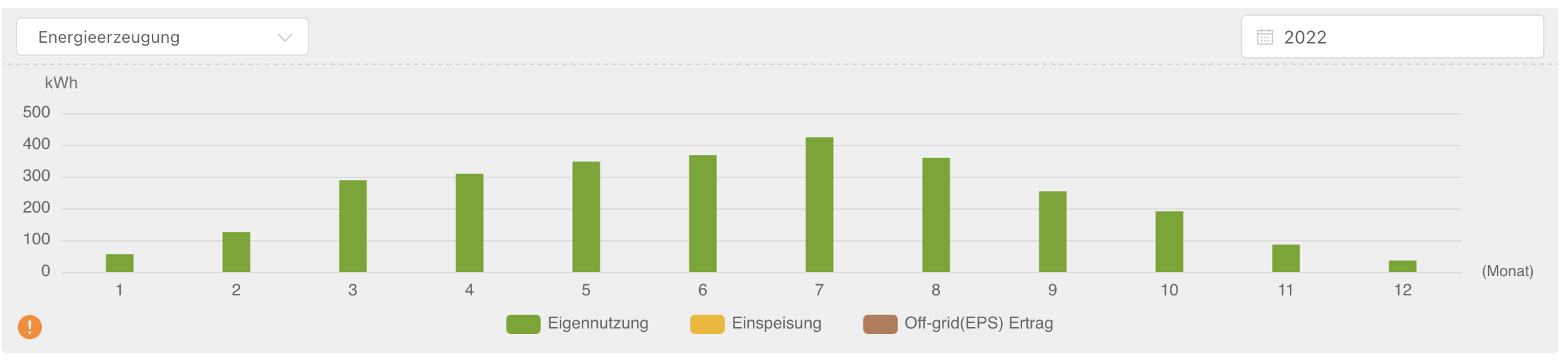 Wie aus dem Diagramm zu erkennen ist, sind die Monate Jänner, Februar, November und Dezember nicht sehr ertragreich. Im gesamten habe ich für das Jahr 2022 einen Ertrag von 2844 kWh erreich. Aus meiner Sicht eine gute Ausbeute.