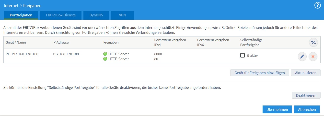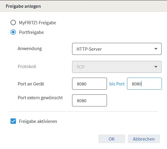 4.) Die erste Portfreigaben heißt HTTP - Server der Logo mit dem Port 8080.